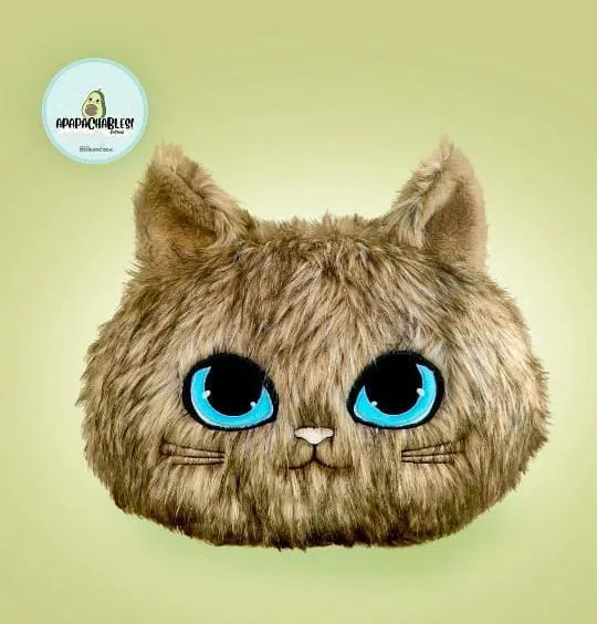 MI MICHIS CAFE, cojin apapachable, de 45 cm x 45 cm, peludita,sus ojos esmeralda te atraparan, emprendimiento colombiano